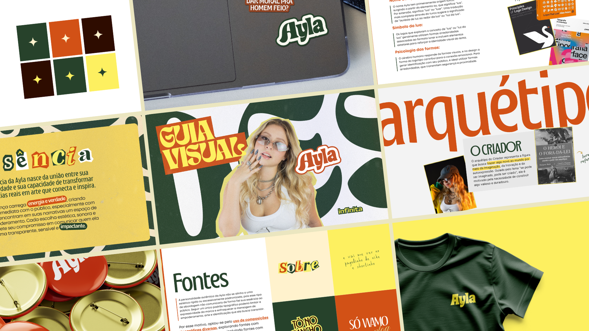 A Ayla buscava gerar identificação imediata com seu público. Para isso, foi importante identificar seu arquétipo e traduzir seu posicionamento em palavras, estes orientaram as escolhas da sua identidade visual.