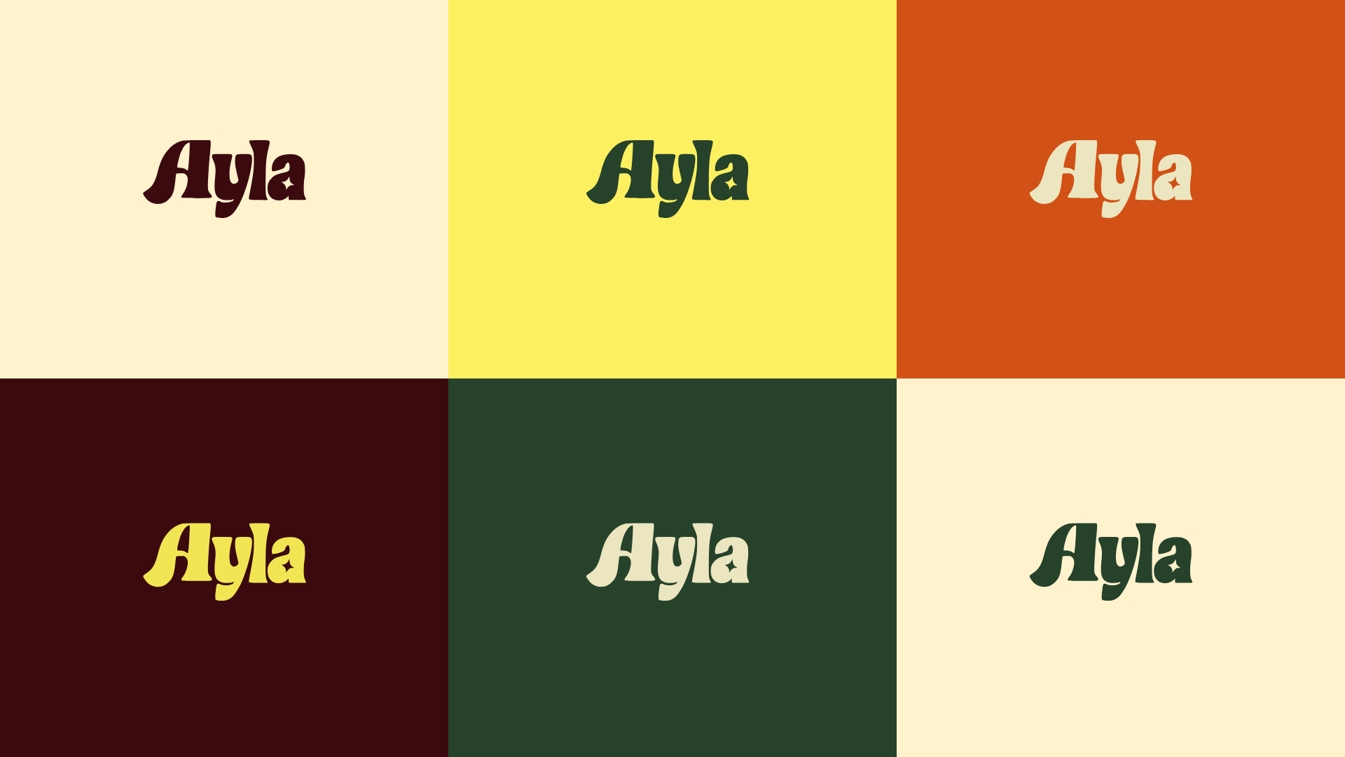 A personalidade da Ayla pede liberdade visual. Seguir um único padrão de fonte poderia limitar a expressividade da marca e ir contra sua mensagem.