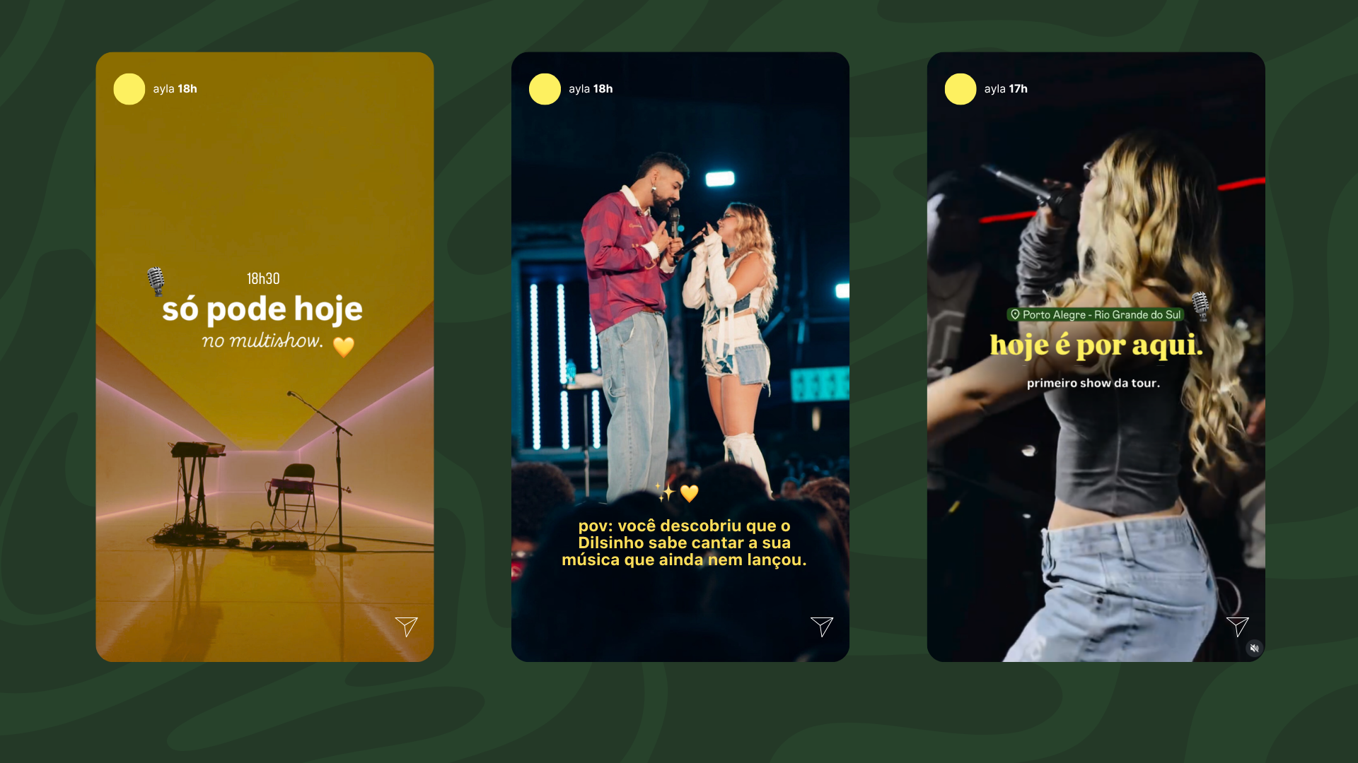 A estratégia visual também inclui pensar na estética dos stories, já que é uma artista muito presente no Instagram.