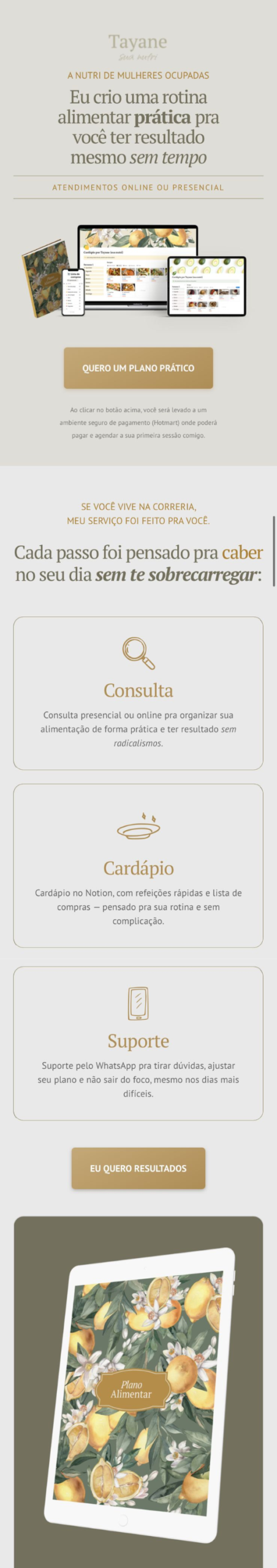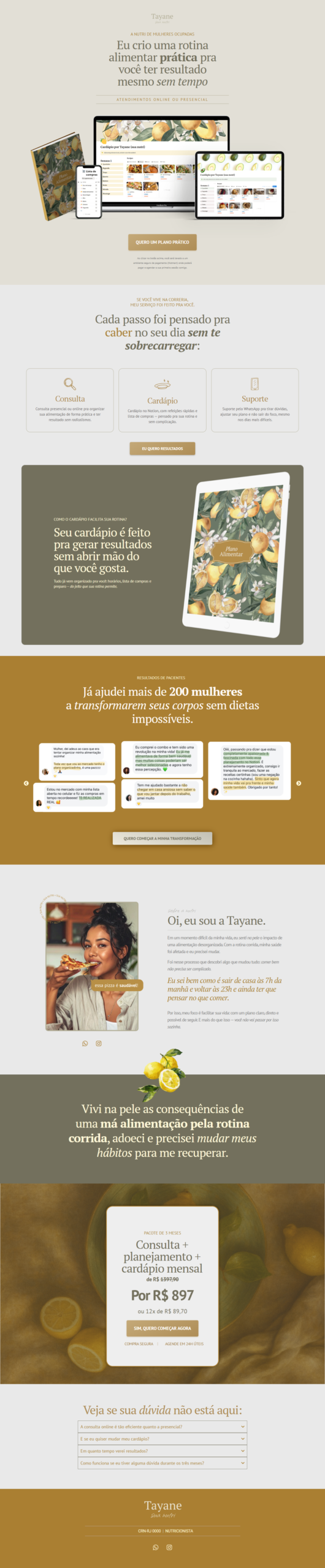 Criar uma página de vendas para uma nutricionista com foco em mulheres com rotina corrida, que não têm tempo para cozinhar ou seguir dietas complexas, mas desejam emagrecer e melhorar a alimentação.